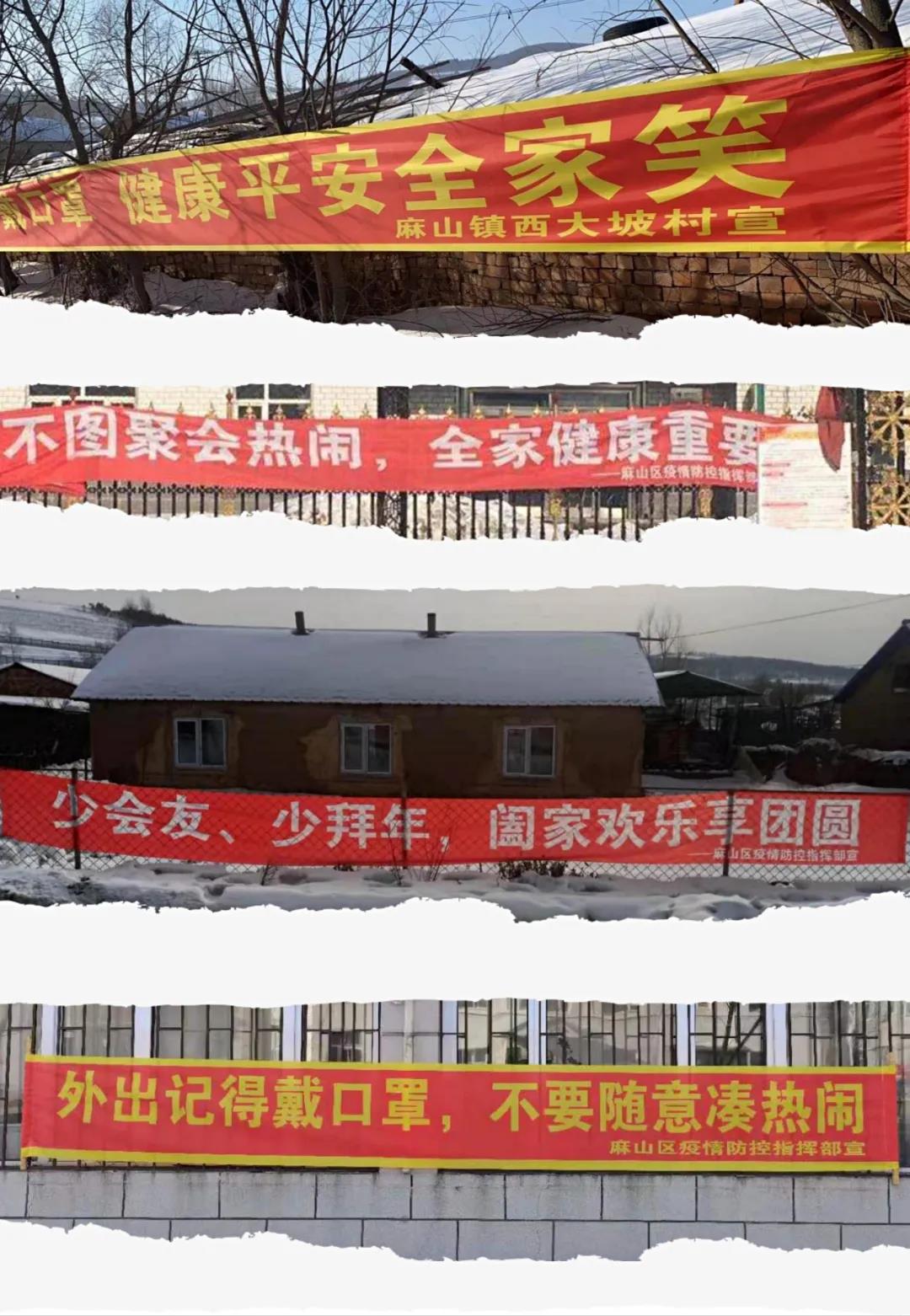 各村除了通过小喇叭、微信群、抖音小视频播放自编“顺口溜”外,还张贴宣传标语、悬挂横幅、印发宣传材料等多种形式进行宣传,采取群众喜闻乐见的方式,动员群众主动参与到防疫宣传工作中来,全力打赢疫情防控阻击战、持久战!(麻山区纪委监委)