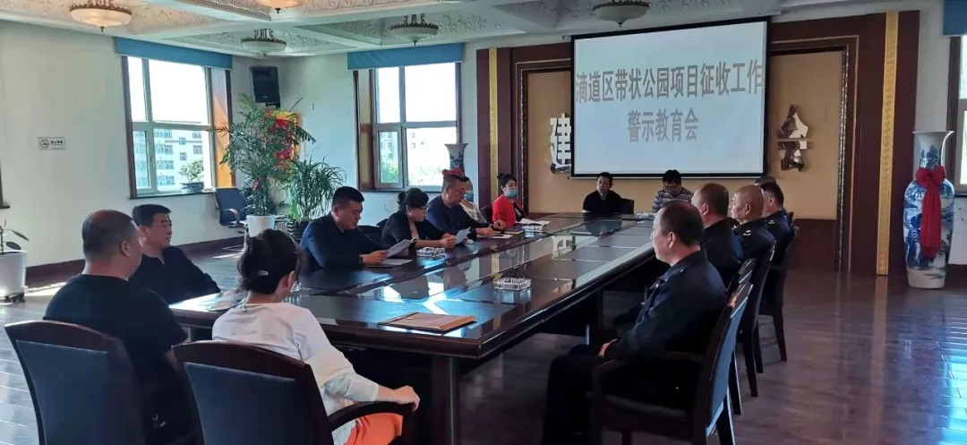 六月的阳光热烈明媚,在滴道区带状公园项目的拆迁现场,一场针对房屋征收工作的警示教育大会正开的如火如荼。