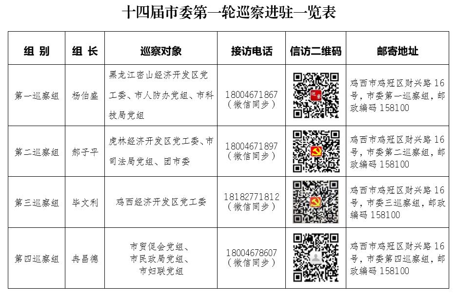 经市委批准,十四届市委第一轮巡察组建8个市委巡察组,对19个单位党组织开展巡察。巡察组采取“一托二”“一托三”工作方式,分别对14个单位党组织开展常规巡察;对1个单位党组织开展提级巡察;对4个单位党组织开展专项巡视巡察上下联动。8个巡察组将分批次进驻被巡察单位开展工作。