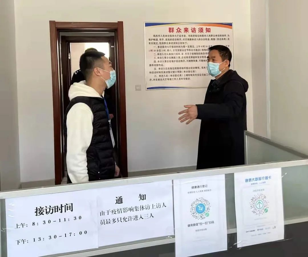 “市信访局来访接待大厅人员聚集,每一个防控细节都要落实到位,包括等候区,要安排专人引导,督促戴好口罩,保持间隔间距”。