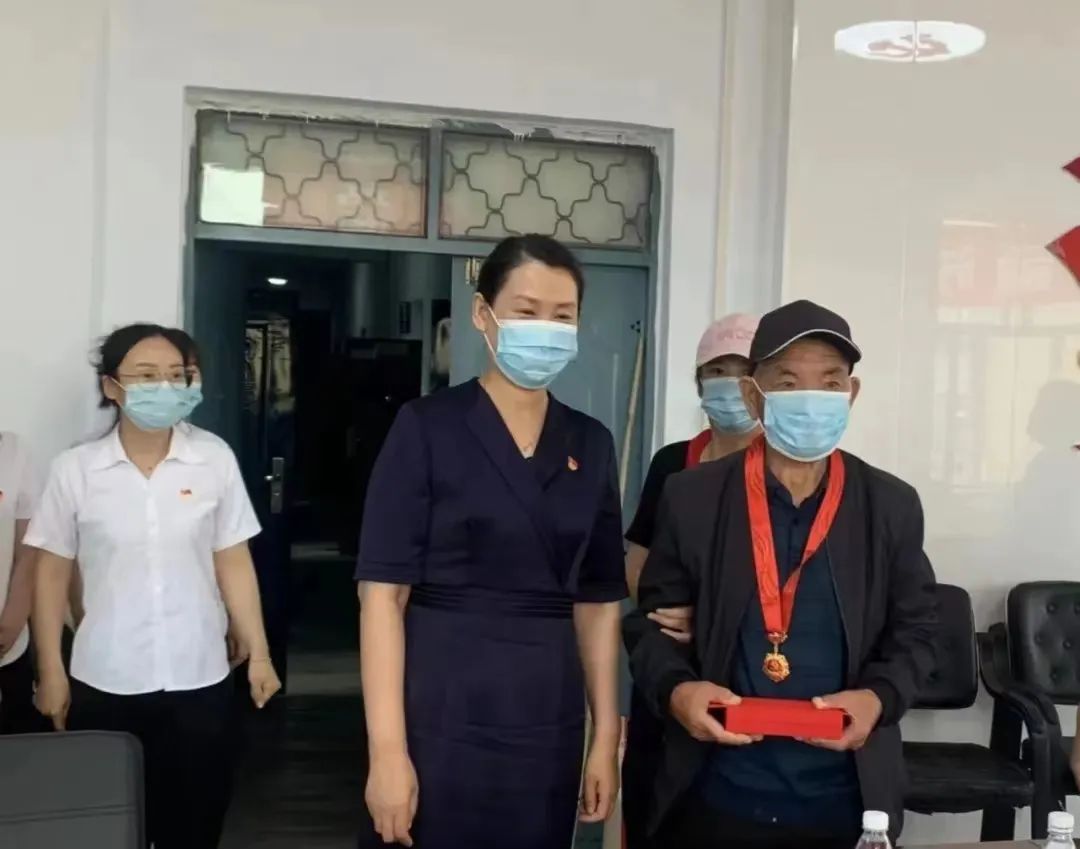 城子河区纪委监委与杏花街道党工委联合开展主题党日活动,为党龄超过50年的老党员颁发“光荣在党50年”纪念章。