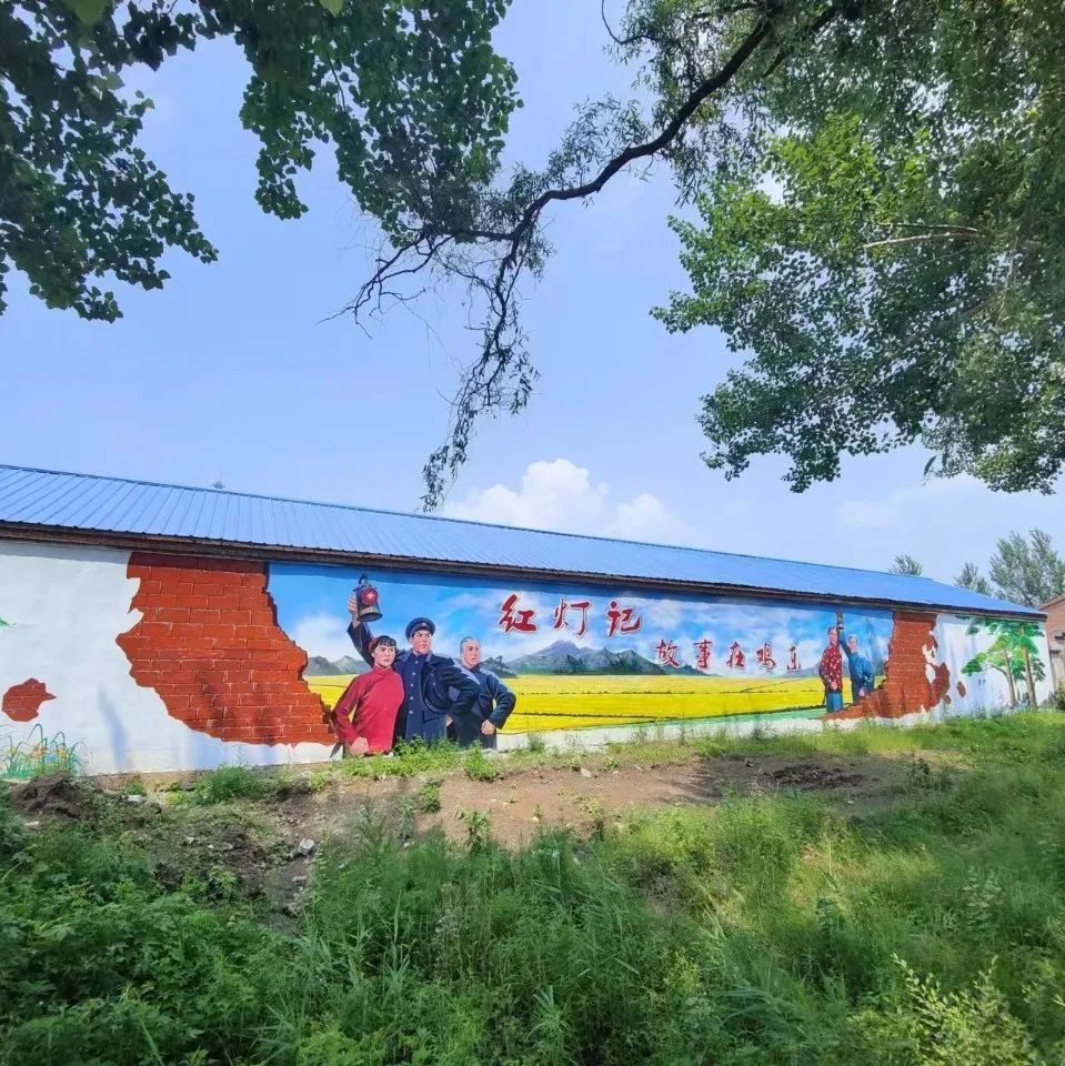 其中,《红灯记》文化展示街项目最具特色。在东海镇新华村,现代京剧《红灯记》中铁路工人李玉和居住的房屋,以及李玉和被敌人严刑拷打、铁梅和李奶奶贴窗花等经典场景都一一体现,漫步其中,英雄们前赴后继英勇奋斗的故事历历在目。在村委会宽敞整洁的广场上,一幅反映哈达河抗日烽火的浮雕墙厚重展开,从白山黑水到西征抗战,让人们直观地了解过去那段峥嵘岁月和伟大的革命历程。以新华村历史沿革为主的彩绘墙色彩明亮,展示了鸡东人在中国共产党的带领下,生产生活发生的翻天覆地变化。