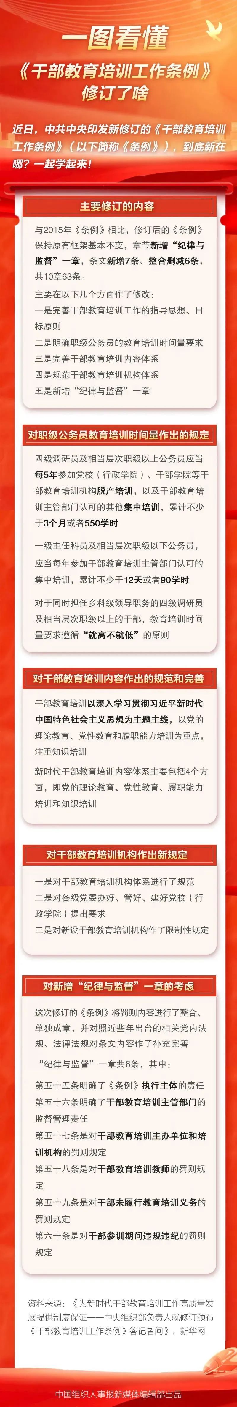一图看懂《干部教育培训工作条例》修订了啥-凯发娱乐