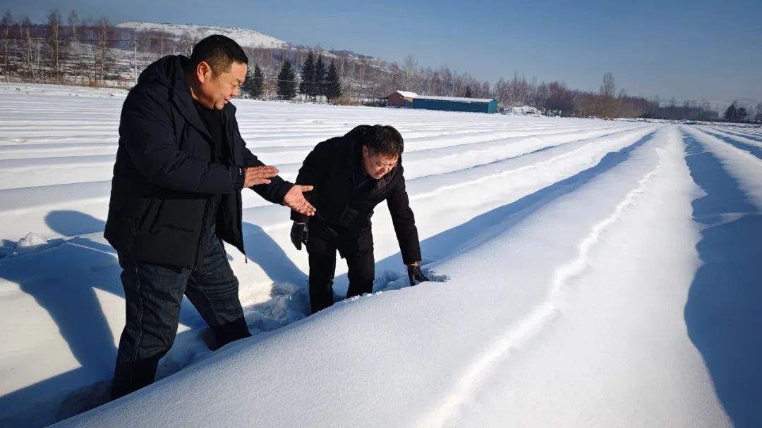 ▲图为驻市自然资源和规划局纪检监察组干部与林场工作人员在滴道区兰岭林场苗木培育基地查看土壤冻结情况,并督促做好应急预案,打好防灾减灾攻坚战。
