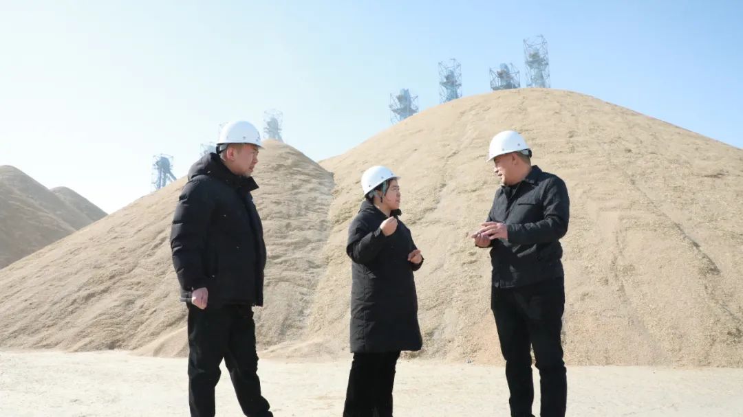 ▲图为虎林市纪委监委工作人员向收购企业负责人了解粮食收购、仓储情况。