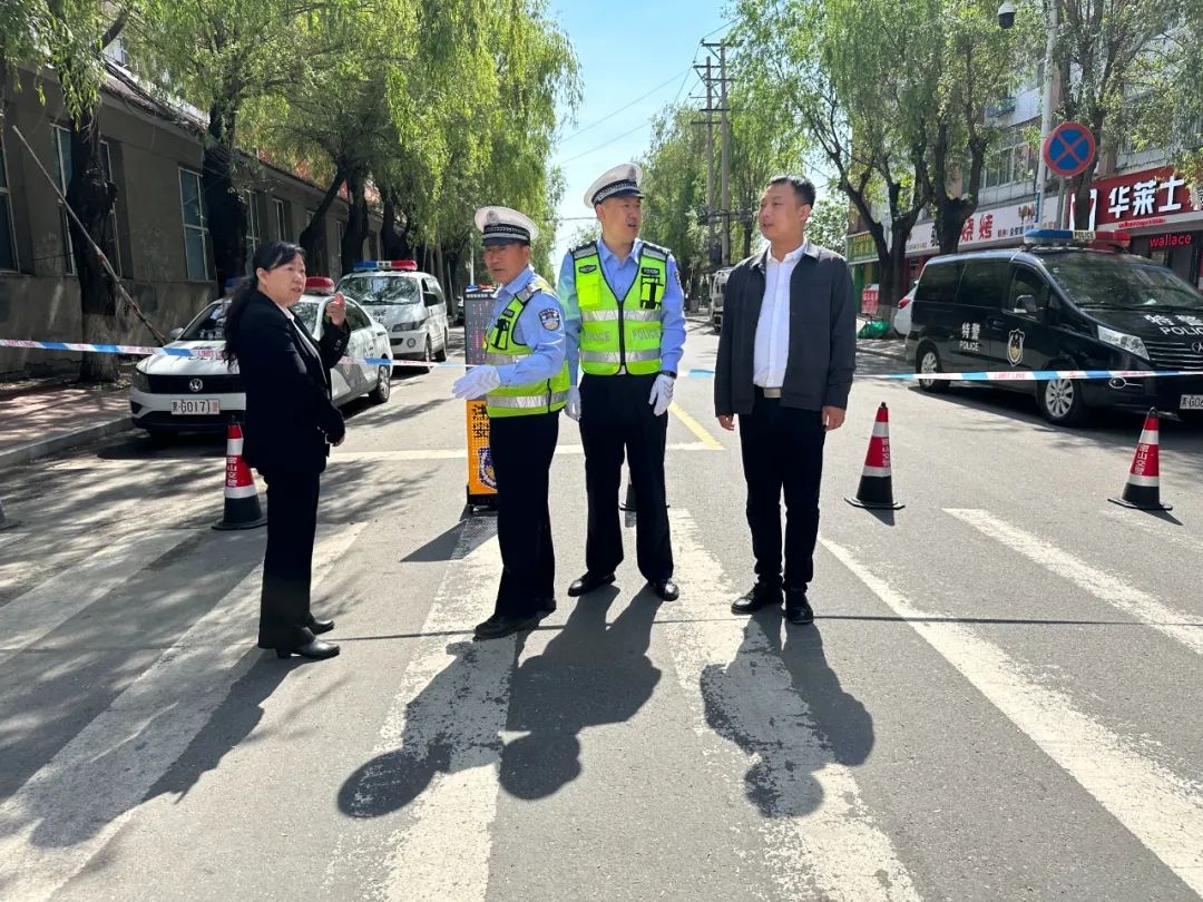 ▲驻市公安局纪检监察组针对考点周边警力配置、考生证件办理“绿色通道”、交通疏导警力配置等群众关心的问题开展监督,确保考生安全、准时奔赴考点。图为工作人员现场查看考点周边安保维稳情况。