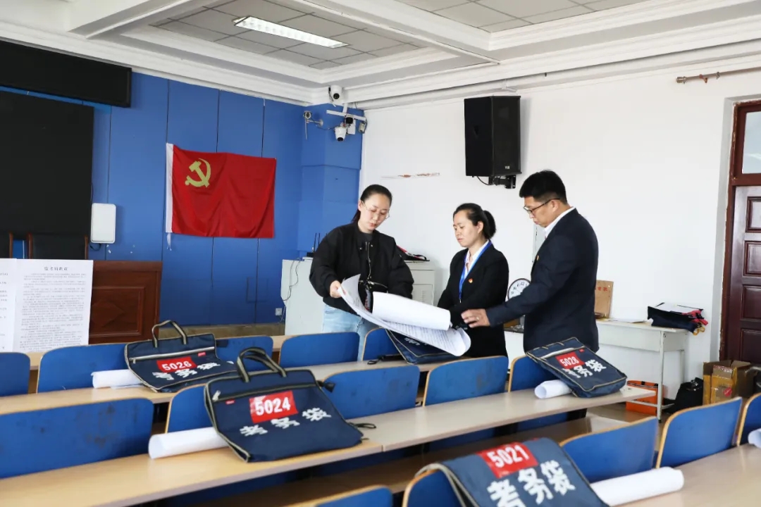 ▲密山市纪委监委紧盯考试组织、保密安全、突发事件应急处置等重点进行监督检查,坚决筑牢高考“安全线”。图为该市纪检监察干部深入考点监督考务布置情况。