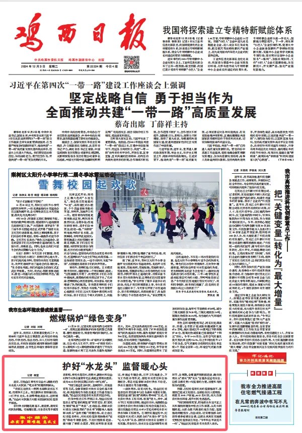 12月3日,《鸡西日报》“集中整治 办实事 解难题 惠民生”专栏刊文《护好“水龙头” 监督暖心头》,报道我市纪检监察机关在群众身边不正之风和腐败问题集中整治过程中,将解决农村供水水量、水质问题作为解决群众“急难愁盼”问题的切入点,推动相关职能部门不断优化农村供水工程布局,切实提升农村供水保障管理和服务水平,确保农村饮用水从“源头”到“龙头”全链条全过程安全的生动实践。