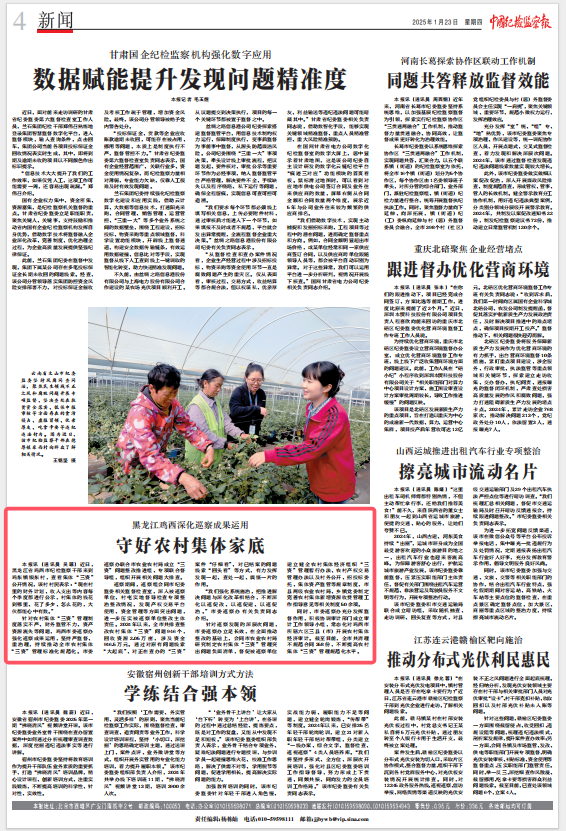 《中国纪检监察报》刊文:黑龙江鸡西深化巡察成果运用 守好农村集体家底
