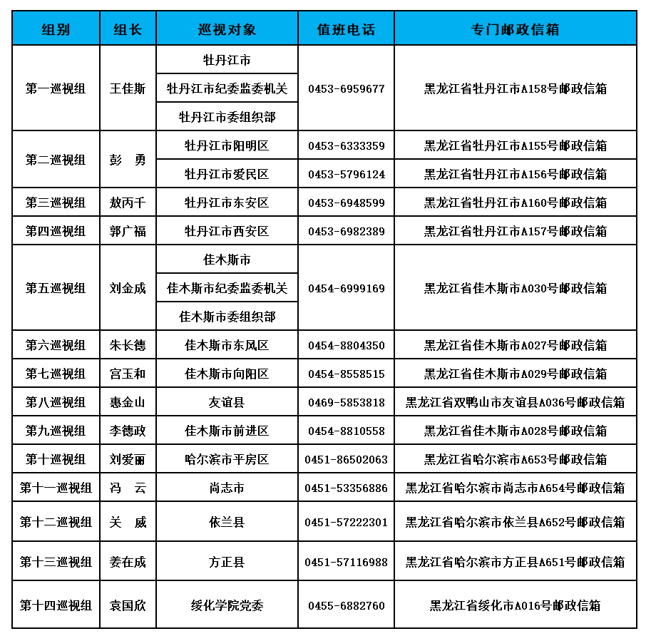 十三届黑龙江省委第七轮巡视第一批次完成进驻(附组长名单、凯发旗舰厅的联系方式)